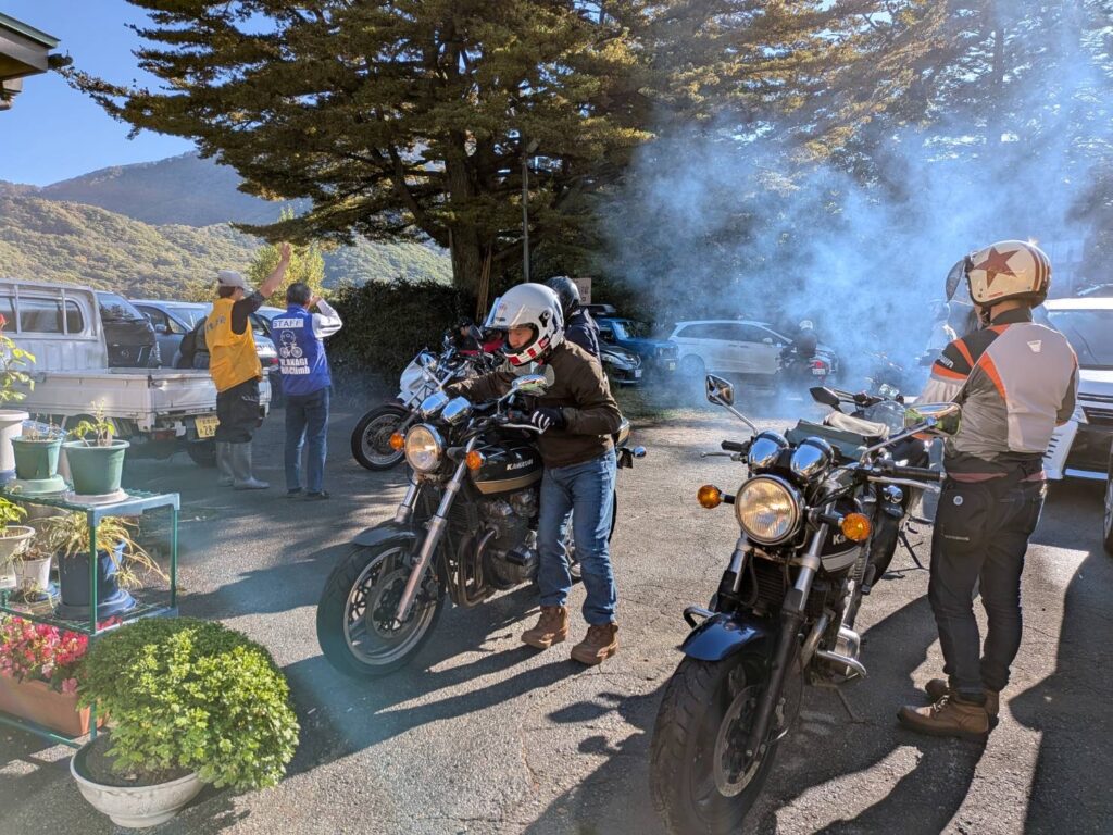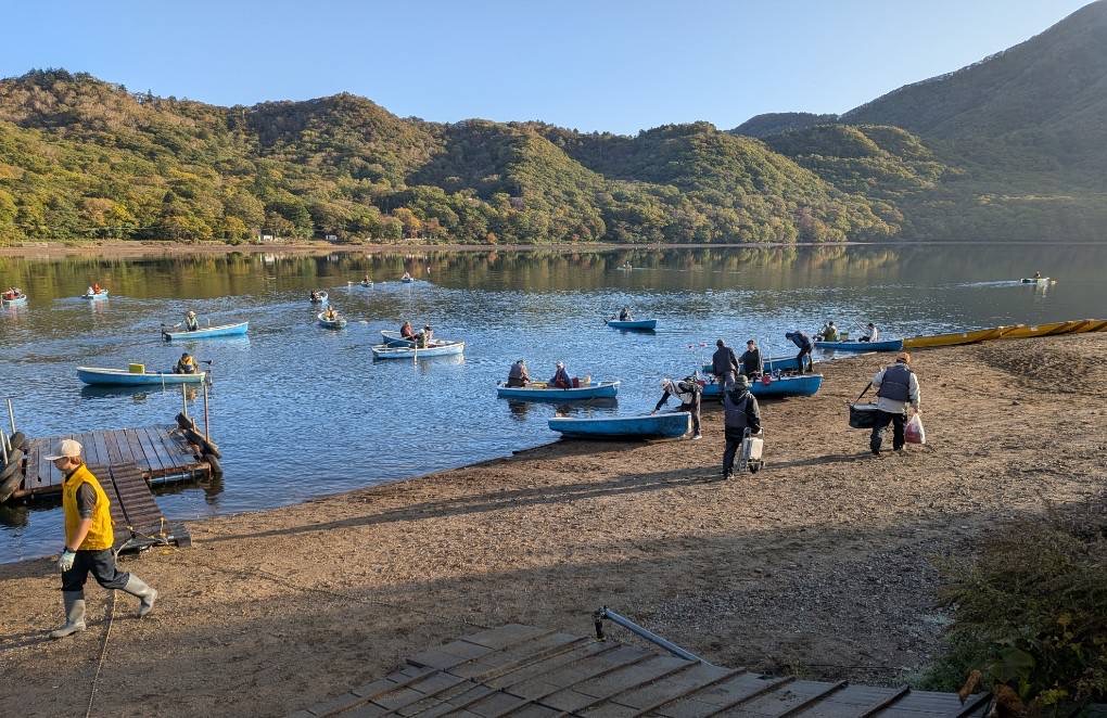 秋晴れの中赤城山のツーリングを楽しんでいます。 三連休の中日の今日は早朝から沢山の釣り人がやってきて、7時の出船時間に一斉に釣りのポイントへと漕ぎ出しました。 昨日は冷たい雨の中バイクの皆様が到着されましたが、今朝は爽やかな素晴らしい秋晴れになり、朝食後早速出発準備です。 楽しい夜を過ごされて、次の目的地に向けて一列にスタートして行かれました。1 良いツーリングになりますように! 旅立った旅館の庭にはヤマボウシの実がタワワニ実っています。 赤城山 湖畔の宿 青木旅館 投稿日:2025.10.12 カテゴリー:お花情報 ブログ ブログ&ニュース