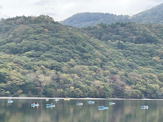 暑かった夏の影響で赤城山も紅葉が遅れていましたが、週末から大沼湖畔の木々が色づき始めました。