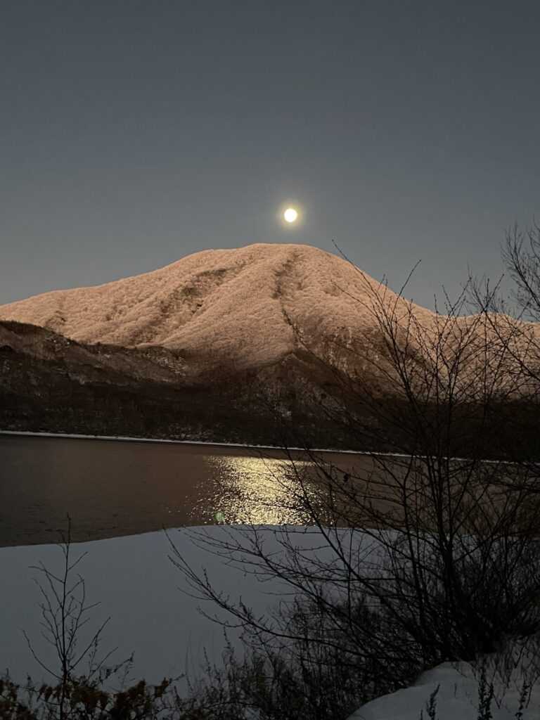 黒檜山に寒月が! 今年最後の満月は雲間の月でした。 前日の寒月は黒檜山の真上に登って大沼に光の道が出来て素晴らしかったです。 今朝は晴れて屋根の雪が解け、可愛い氷柱が並びました。 師走に入って一段と寒くなり、冬景色が楽しめるようになりました。 赤城山 湖畔の宿 青木旅館 投稿日:2025.12.07 カテゴリー:ブログ ブログ&ニュース