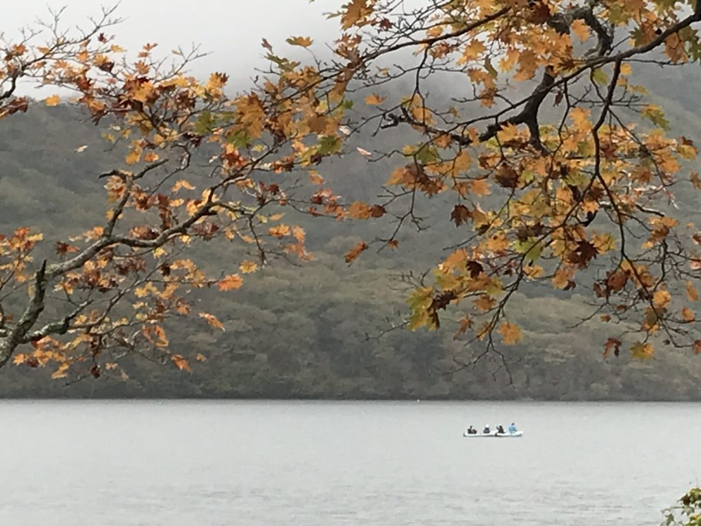 青木旅館社長で、赤城大沼漁業協同組合組合長の青木泰孝と一緒にボートでのわかさぎ釣りにチャレンジしました。乗船間もなく組合長の竿には1匹掛かりましたが、雨が降り出してしまい川野さんが釣り上げる前に残念ながら切り上げました。