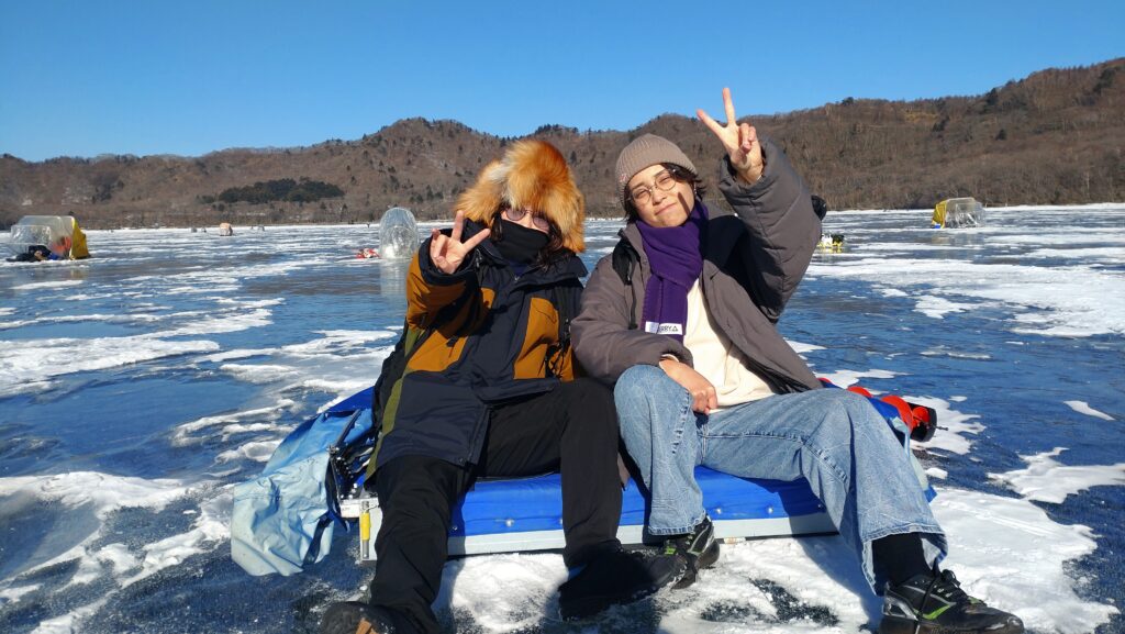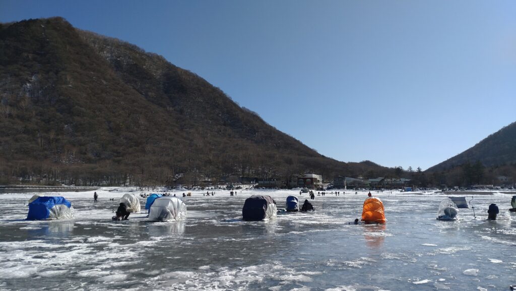 ★解禁(3日目)最初の週末、氷上はワカサギ釣りとアイスバブル撮影のお客様で賑わいました🎣🧊📸🚶氷った湖の氷上に立つのが人生初のお客様はそれだけで感動されていました✨️氷の世界おろるべし赤城山🏔️ご利用頂いた皆様ありがとうございました🙇皆様のご来店をお待ちしております。青木旅館、青木別館)