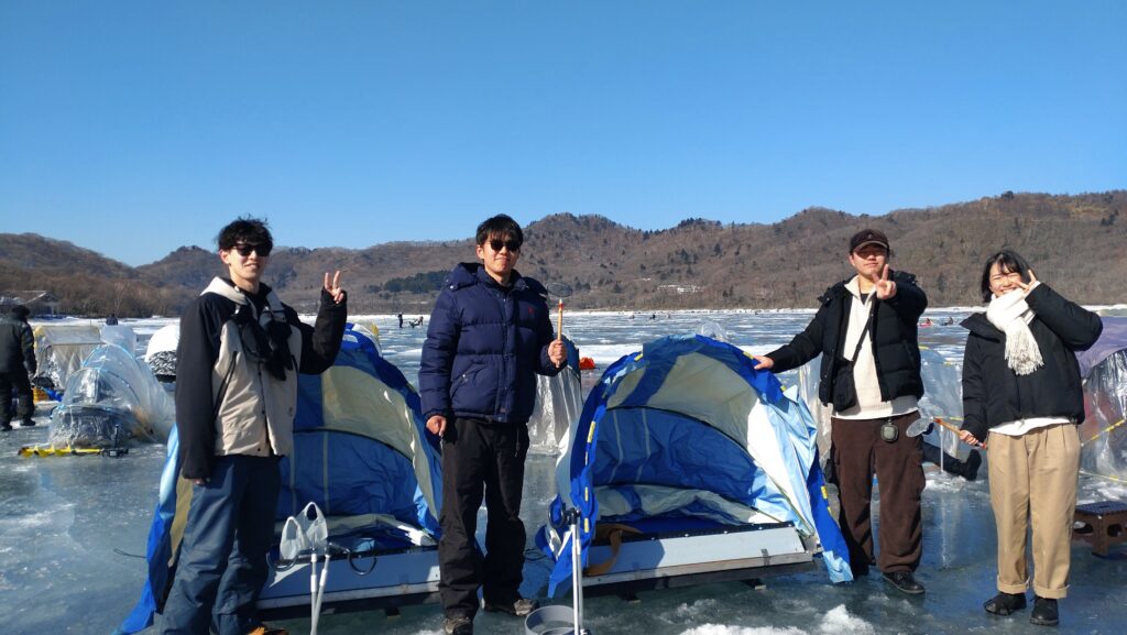★解禁して最初の日曜日、朝は風がありましたが日中は釣日和で皆さん氷上ワカサギ釣りを楽しみました🎣ご利用頂いた皆様ありがとうございました🙇皆様のご来店をお待ちしております✨️(青木旅館、青木別館)