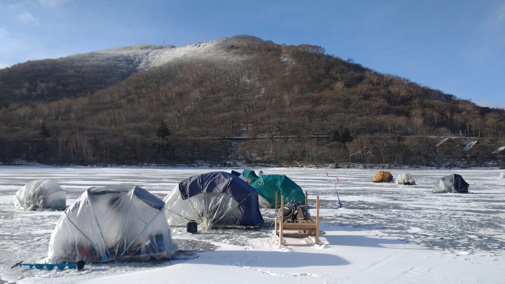 ★風は収まり晴れていましたが、寒い氷上でした。フカンドで釣果が伸び、リンク脇でデカサギが釣れていました。カタツムリテント内は暖かく皆さんラストまでワカサギ釣りを楽しんでいました。本日ご利用頂いた皆様ありがとうございました🙇皆様のご来店をお待ちしております。(青木旅館、青木別館)