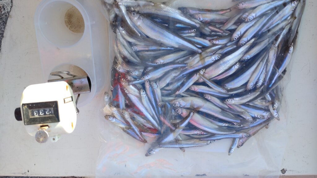 ☆10月30日(木)釣果、(高原学校沖11.5m〜12.5m)吉澤様260匹7:30〜15:00、佐原様233匹7:30〜14:30、天気(曇りのち晴れ)気温(2℃〜10℃)水温(13℃〜13.2℃)サイズ(6㌢〜13㌢)仕掛(ハイパーパニック、赤針)エサ(白サシ)