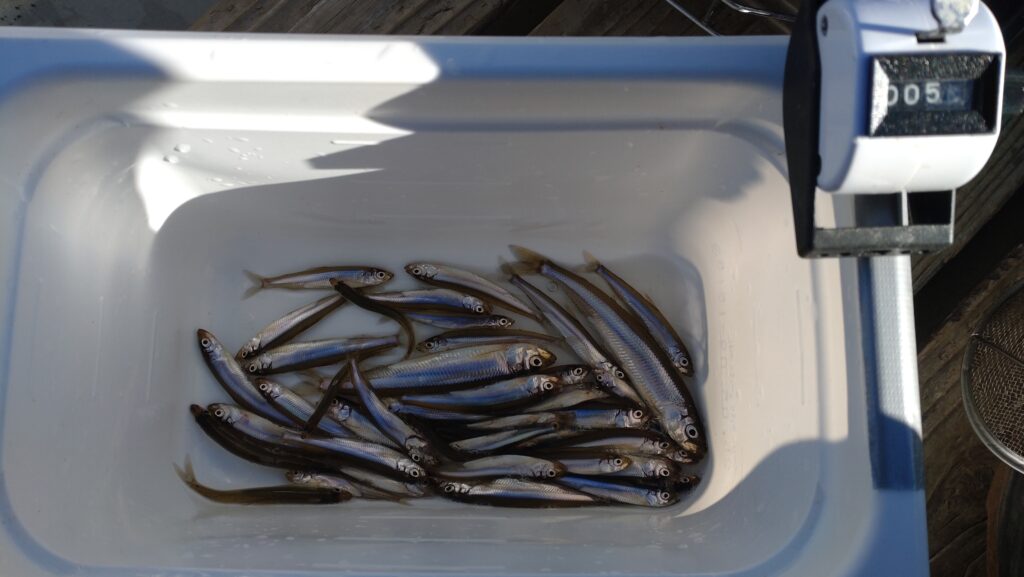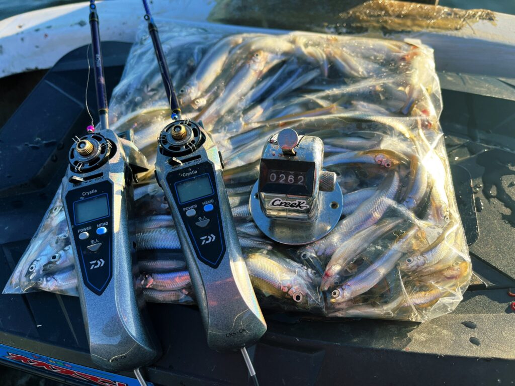 ☆11月22日(土)釣果、齋藤様262匹(フカンド16.2m)7:00〜15:30、田部井様105匹(沼尻沖13.5m)7:30〜15:30、天気(晴れ、北風)気温(1℃〜5℃)水温(7.2℃〜7.4℃)サイズ(5㌢〜13.5㌢)エサ(白サシ、赤虫)