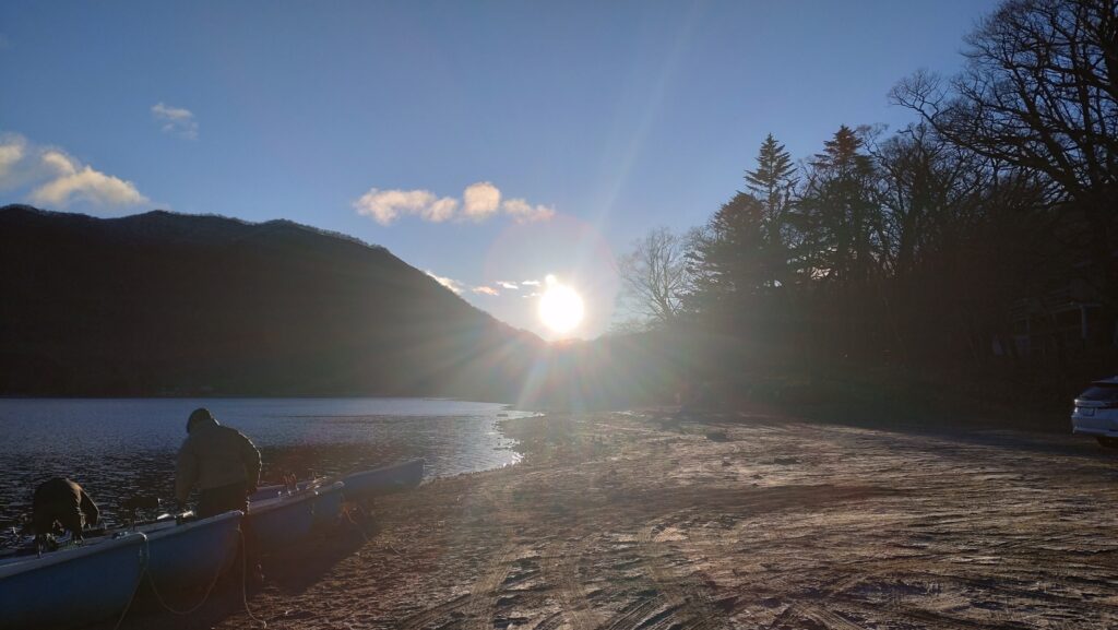 ★朝は風が強く午後は穏やかになりました。全体的に渋い状況ですが、齋藤様フカンドで底からデカサギを剥ぎ取るように釣りました。まさに神技お見事でした。今日は黒檜山の霧氷風景が綺麗でした🏔️今年最後の三連休スタート湖畔風景も楽しんでください✨️本日ご利用頂いた皆様ありがとうございました🙇皆様のご来店をお待ちしております。(青木旅館、青木別館)