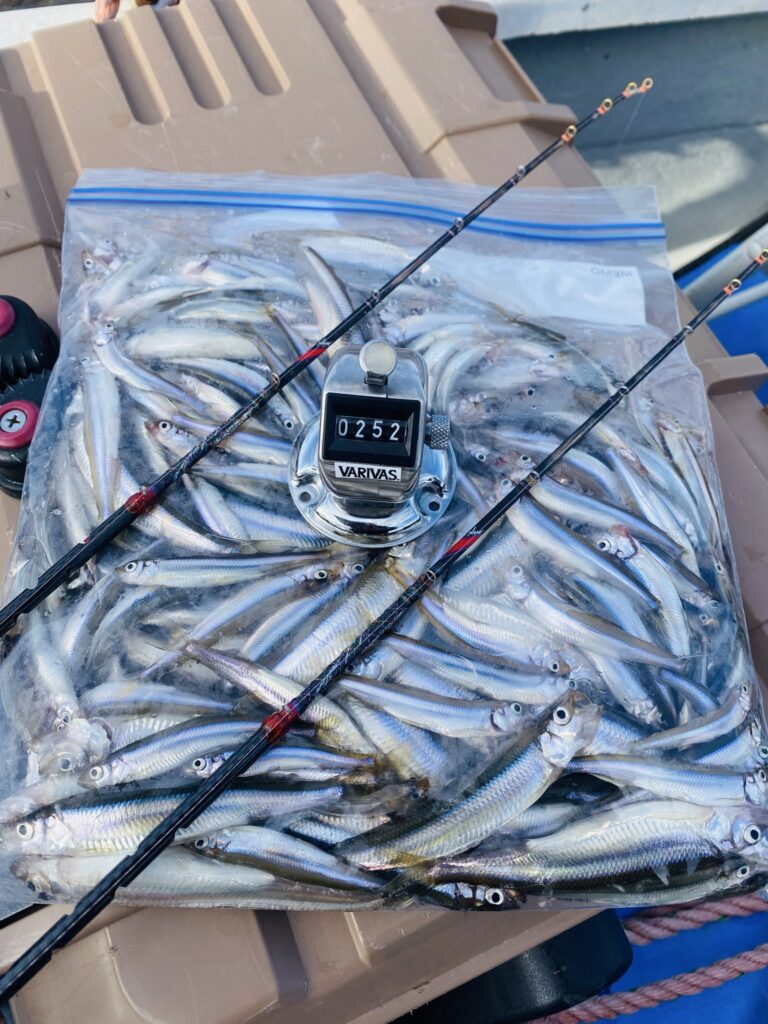 ☆11月24日(月)釣果、(フカンド16m)鈴木様252匹(13時まで)、田所様183匹、柴田様109匹、福島様97匹、天気(晴れ)気温(ー4℃〜9℃)水温(7℃)サイズ(6㌢〜13.5㌢)エサ(白サシ、赤虫)