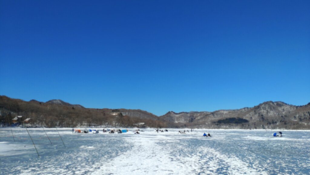 ★穏やかな湖畔、氷上は釣日和でした。後半は渋い感じでしたが、皆さん1日のんびり釣りを楽しみました。ご利用頂いた皆様ありがとうございました🙇皆様のご来店をお待ちしております。(青木旅館、青木別館)