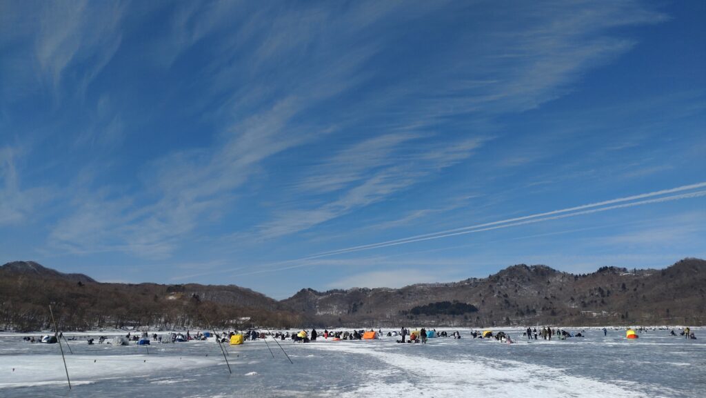 ★穏やかなお天気に恵まれ氷上は釣客で賑わいました。ご利用頂いた皆様ありがとうございました🙇皆様のご来店をお待ちしております。(青木旅館、青木別館)
